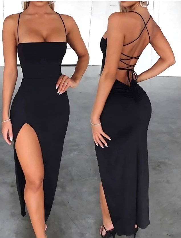 O Vestido Alcinha Colado Longo Costa Nua Trançado Empina Bumbum Com Fendaé a peça perfeita para quem deseja arrasar em festas e eventos especiais. Com alças finas e design colado ao corpo, ele valoriza a silhueta, destacando as curvas de maneira elegante. A parte das costas tem um detalhe trançado que, além de proporcionar um charme extra, deixa o visual sofisticado e sensual. A fenda lateral, além de garantir liberdade de movimento, traz um toque ousado, enquanto o corte "empina bumbum" realça ainda mais a feminilidade. Ideal para ocasiões onde o glamour é essencial.